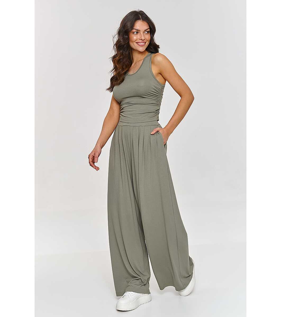Makadamia Set de damă format din top și pantaloni în culoarea măsliniului Vera Top cu decolteu rotund