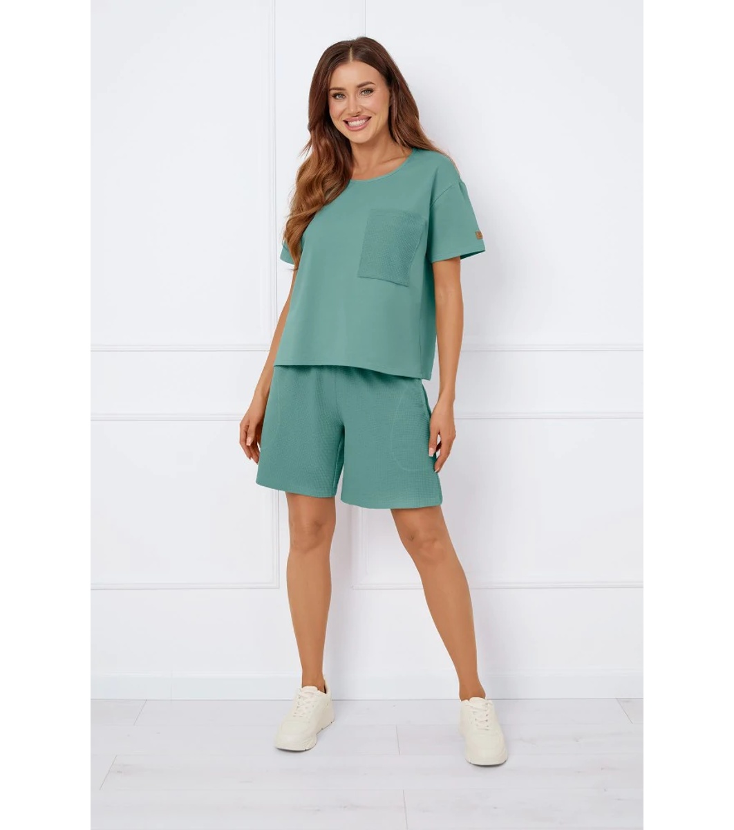 Italian Fashion Set de damă verde din bumbac Bono Bluză cu guler rotund