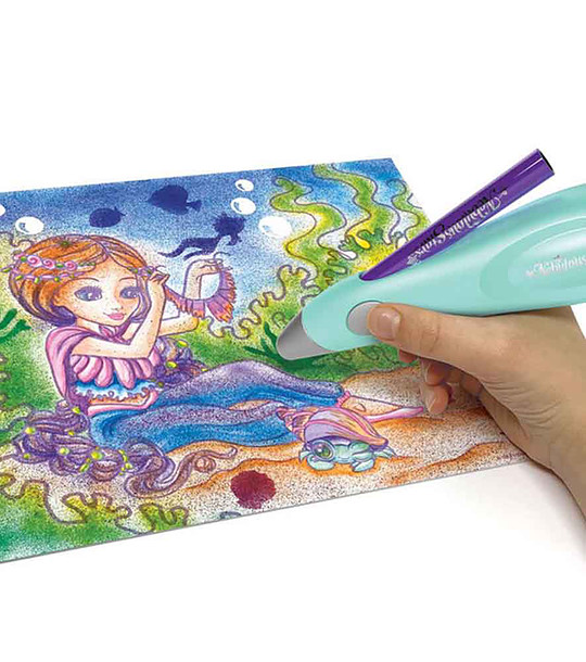 Un set adorabil de stilouri magice în care pui culoare în stiloul electric, pulverizează acea culoare ca un spray pentru ca copiii să-și coloreze creațiile.