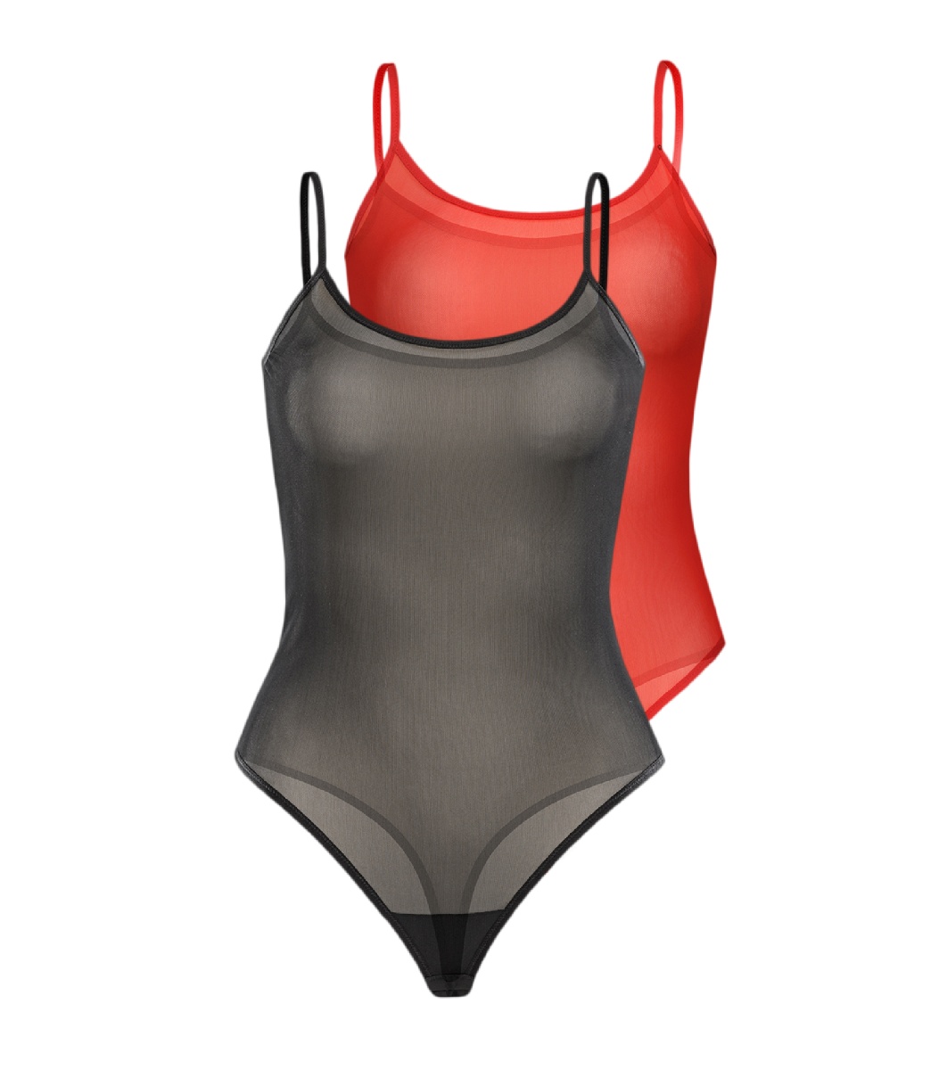 Teyli Set de două body-uri transparente în negru și roșu Sophi Două body-uri de damă confecționate din material tip plasă.