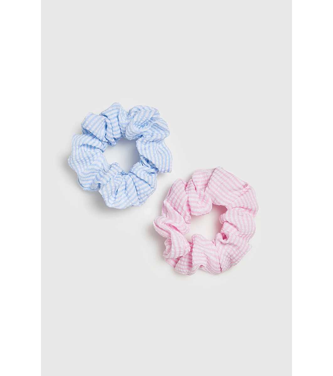 Moodo Set de două scrunchies în carouri în albastru deschis și roz