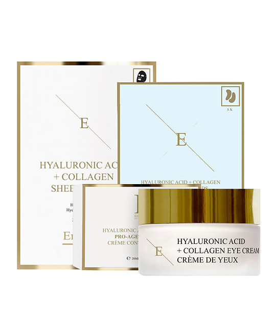 • Trei măști hidratante luxoase, cu efect de 30 de minute, cu o formulă inovatoare ce conține acid hialuronic, colagen, extract de alge și trei extracte naturale bogate în antioxidanți. Conceput pentru a hidrata, hrăni și revitaliza pielea deshidratată și ternă. Se utilizează înainte de machiaj, la un eveniment special sau ca tratament săptămânal de relaxare și hidratare.