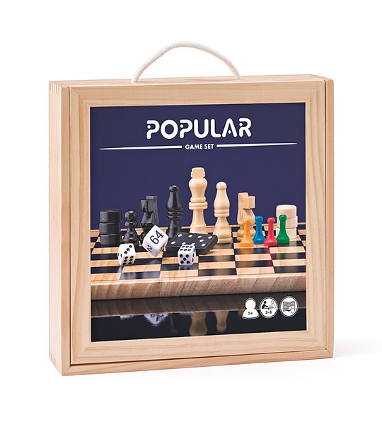 Include jocuri precum șah, dame, nu fi furios, dame, stea, domino și table. Toate jocurile sunt fabricate din materiale lemnoase de înaltă calitate, ceea ce le face rezistente și durabile. Plăcile sunt fabricate din lemn, iar figurinele sunt potrivite pentru a fi așezate pe ele.