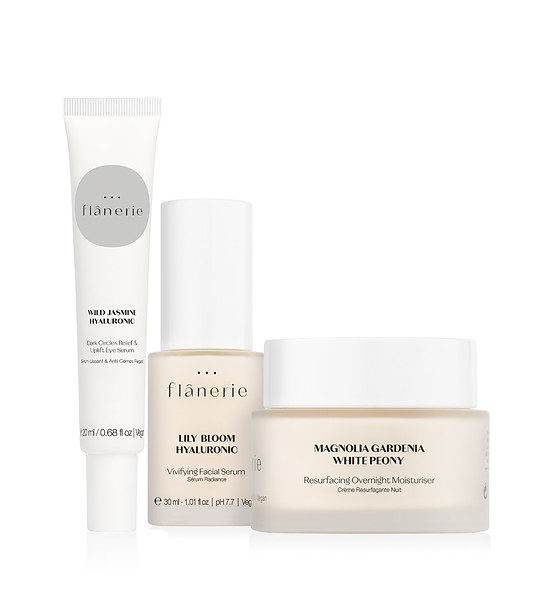 hidratant de noapte - Apă (water), stearat de gliceril, glicerină, ulei din semințe de Sesamum indicum (susan), unt de Butyrospermum parkii (shea), palmitat de cetil, magneziu/potasiu/siliciu/fluorură/hidroxid/oxid, fenoxietanol, ci 77019 (mica), acetat de tocoferil, dimeticonă, unt din semințe de Theobroma grandiflorum, ceară de tărâțe de Oryza sativa, trigliceridă caprilică/caprică, caprilat de gliceril, poliacrilat de sodiu, parfum, etilhexilglicerină, maltodextrină, ci 77891 (dioxid de titan), gumă xantan, acid lactic, acid gliciretinic, escină, extract de păstăi de fructe de Caesalpinia spinosa, rutină, arginină, hialuronat de sodiu, extract de Kappaphycus alvarezii, extract de floare/frunză/tulpină de Tropaeolum majus, cuarț, palmitat de zaharoză, stearat de zaharoză, tocoferol, extract din semințe de Moringa oleifera, ci 77491 (oxid de fier), extract de scoarță de Magnolia officinalis. fosfat disodic, acid citric, extract de rădăcină de paeonia lactiflora.