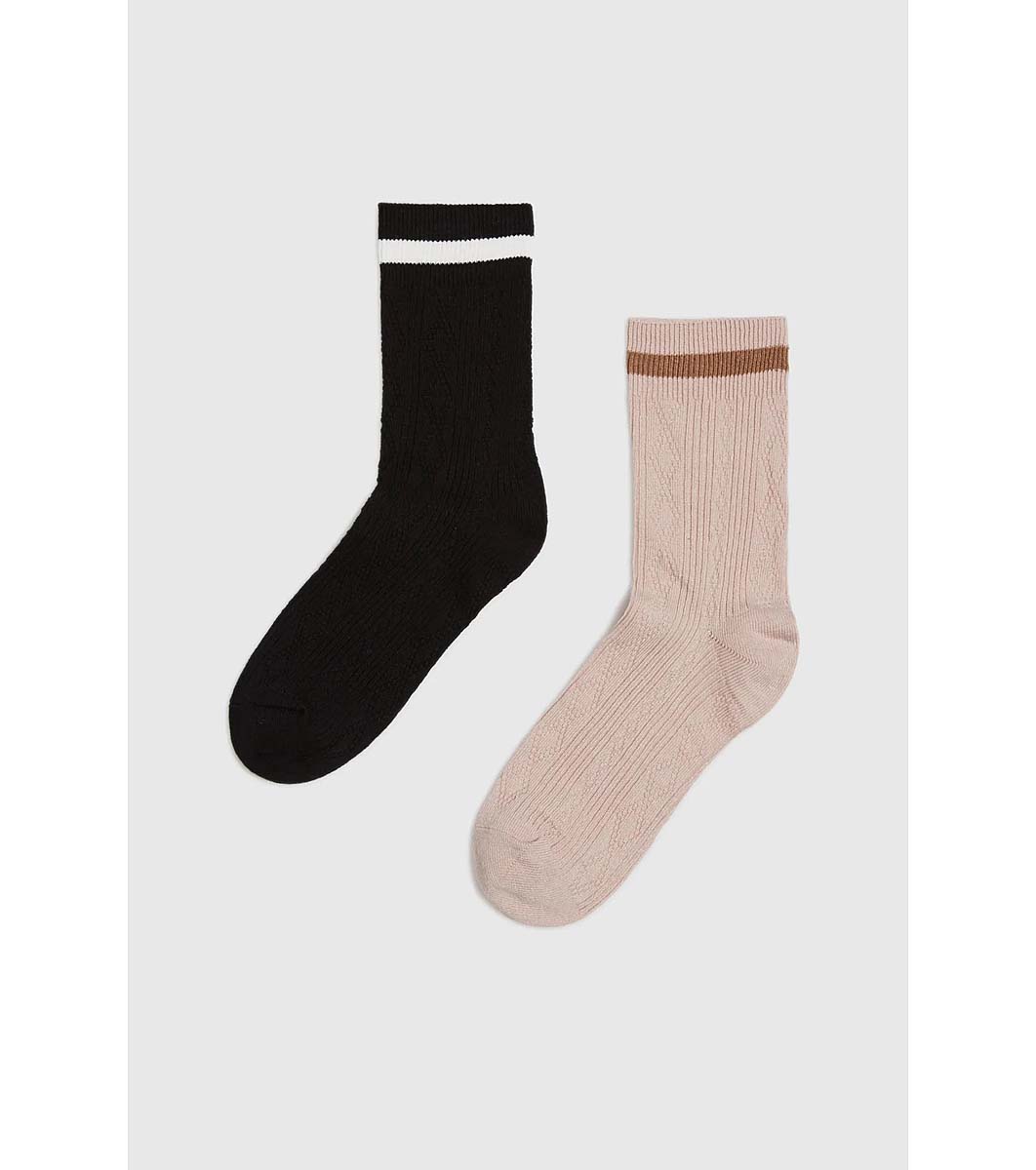 Moodo Set de șosete negre și bej cu pasături contrastante Țesătură înaltă de bumbac