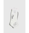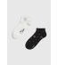 Set de două perechi de șosete joase de damă cu modele diferite. O pereche are un imprimeu cu buline și inimioare, iar cealaltă are o inscripție și un motiv decorativ în partea de sus.