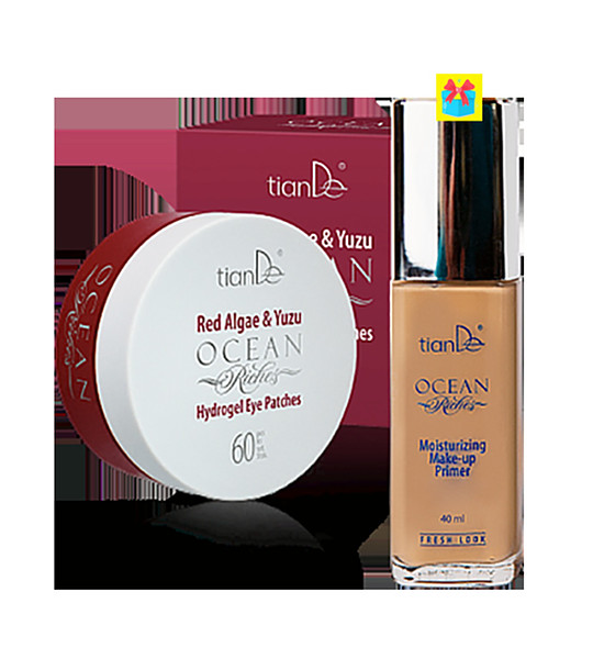 tianDe Set de plasturi contur ochi cu alge roșii și yuzu și bază de machiaj Setul include:
