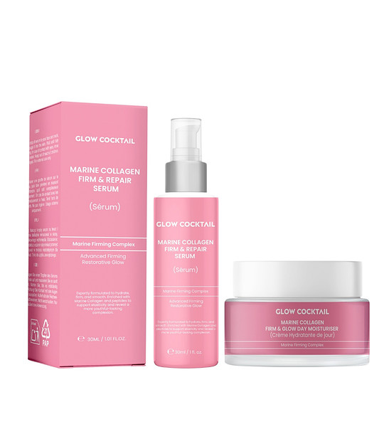 Glow Cocktail London Set de ser și cremă de zi pentru față cu colagen marin Setul include:
