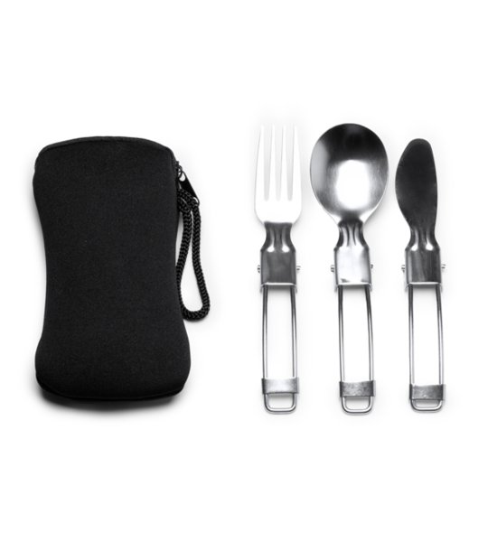 Stamina Set de tacâmuri TINKER cu husă Set de tacâmuri pliabile din oțel inoxidabil cu husă practică din neopren.