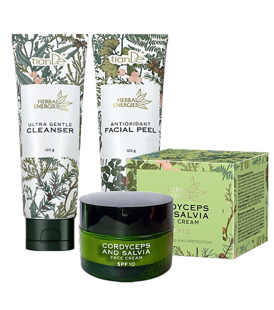 tianDe Set gel de curățare, peeling facial și cremă facială cu cordyceps și salvie Setul include: