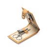 Include foarfece, pensetă, unghiere, pilă și instrument pentru cuticule din oțel inoxidabil