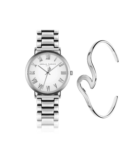Amelia Parker Set mare de ceas și brățară din argint Ceas de damă argintiu cu cifre romane Grand