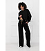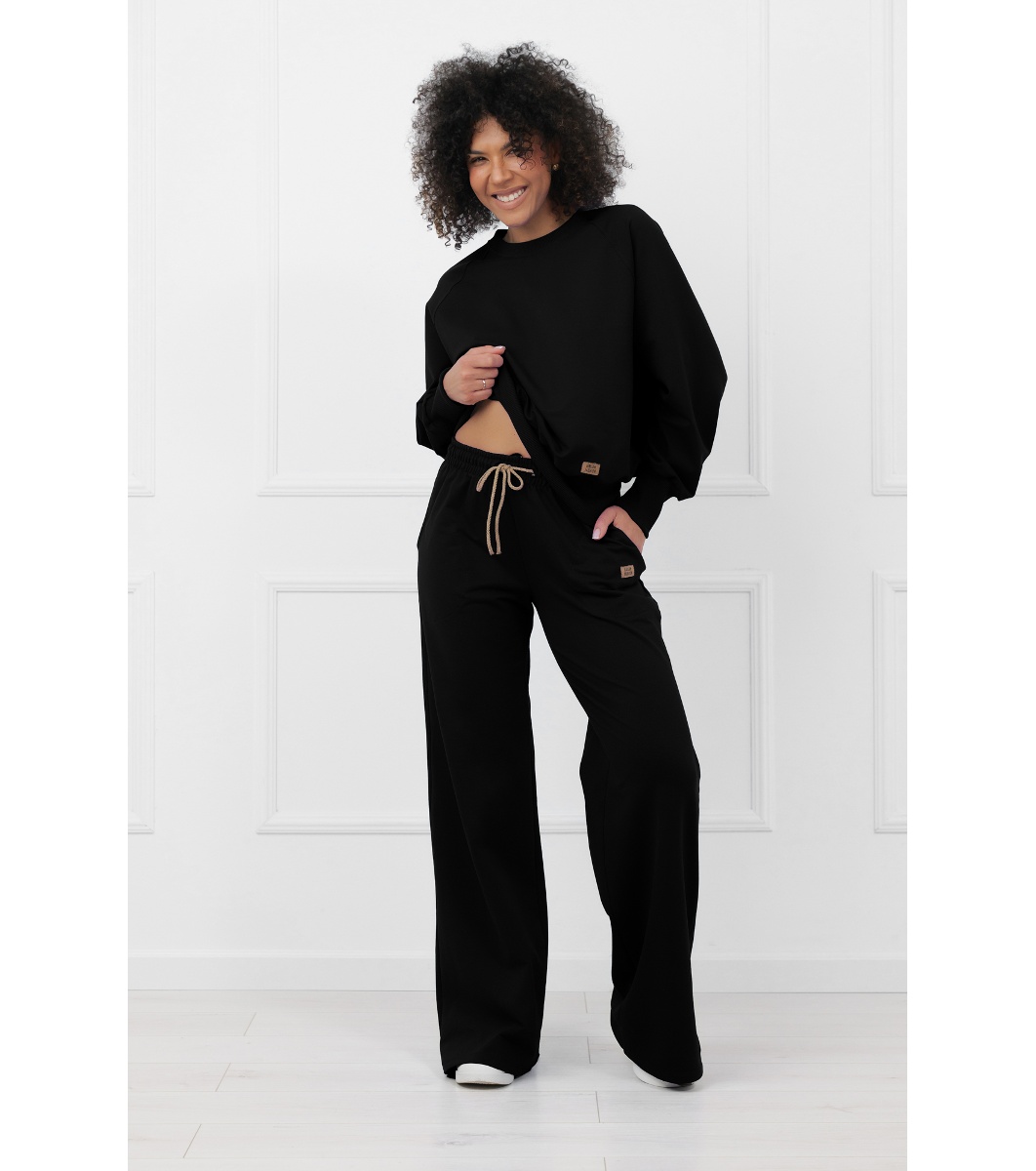 Italian Fashion Set negru de damă din bumbac cu mâneci lungi și pantaloni largi MARGO Set de damă format din top și pantaloni.