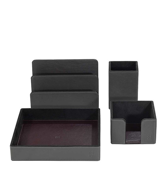 Set organizator de birou din piele în gri închis
