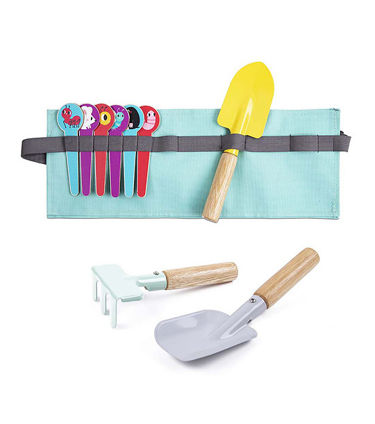 Unelte de grădină, la fel ca ale bunicii. Aranjate convenabil într-o centură de talie, vor inspira orice mic grădinar să dezgroape paturile, să planteze semințele și să le eticheteze.