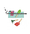 Setul include: două lopeți, o greblă și etichete pentru marcarea culturilor.