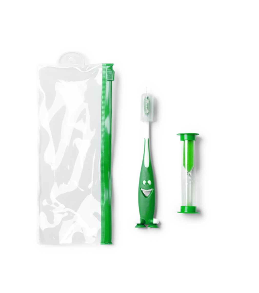 Stamina Set periuță de dinți pentru copii din plastic verde MESLER Комплект четки за зъби с пясъчен часовник
