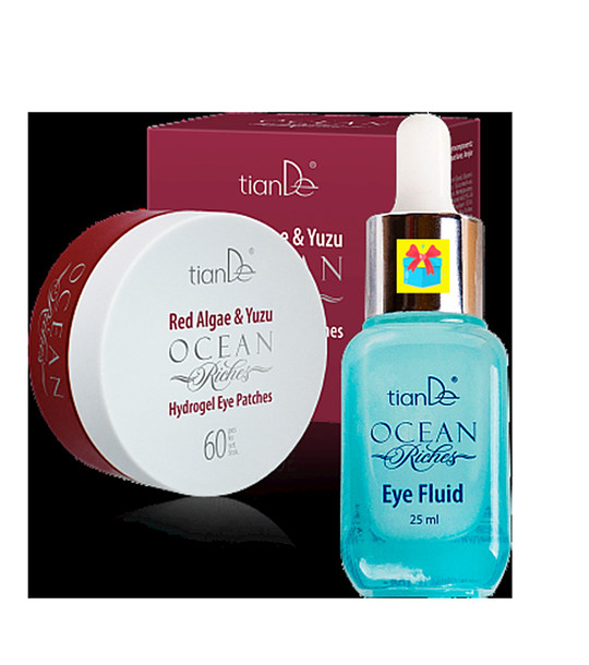 tianDe Set plasturi contur ochi cu alge roșii și fluid contur ochi Setul include: