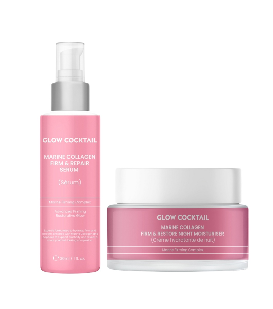 Glow Cocktail London Set ser facial și cremă de noapte cu colagen de mare Setul include: