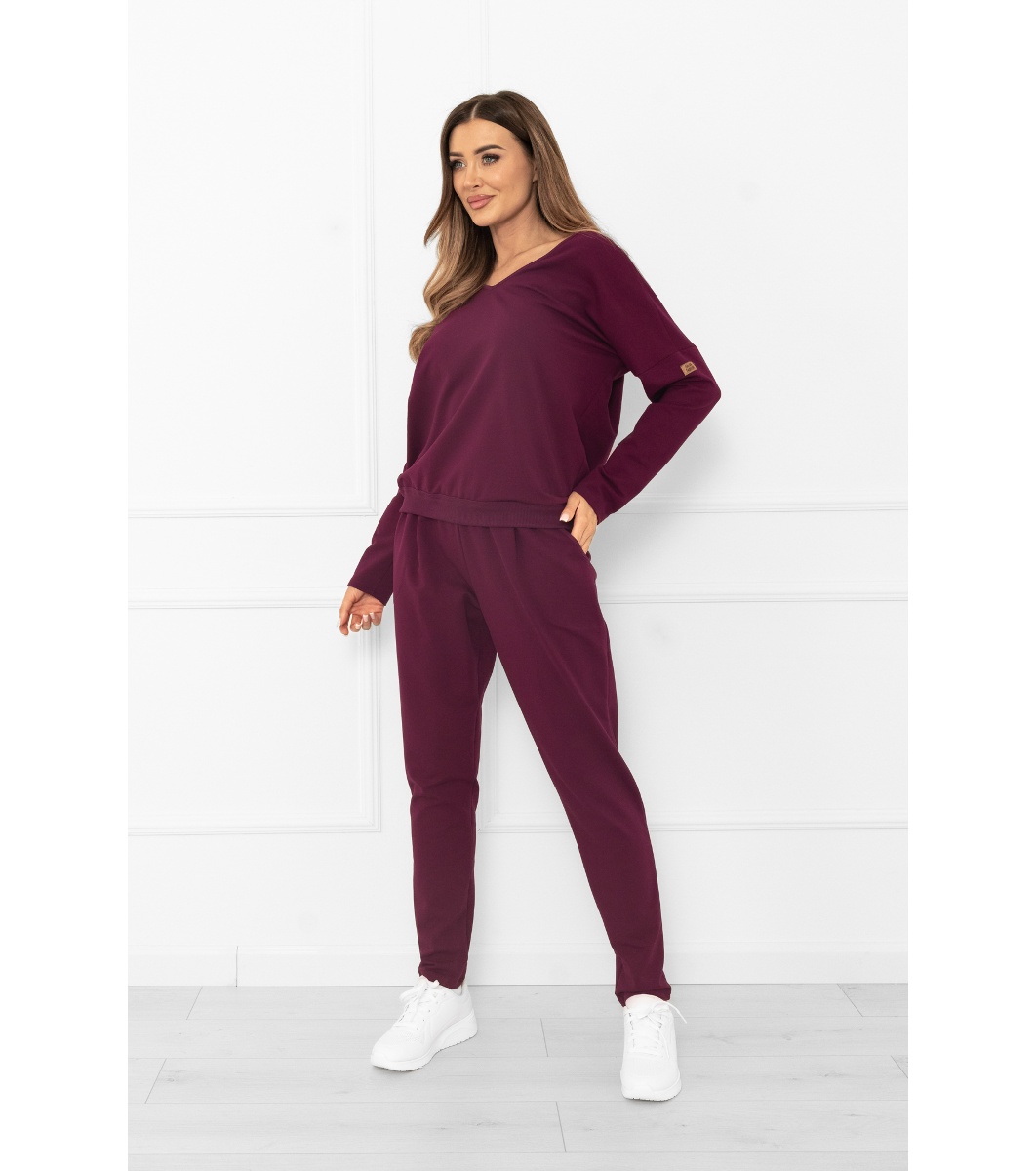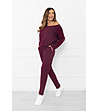 Italian Fashion Set sport pentru femei din bumbac cu mâneci lungi și pantaloni lungi KARINA în culoarea bordo Set sport pentru femei format din top și pantaloni.