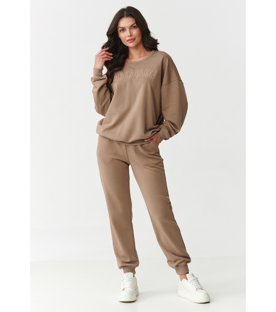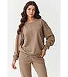 Makadamia Set sport pentru femei din bumbac, culoare latte Bluză cu guler rotund