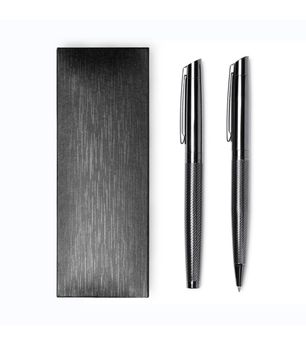 Set elegant de stilou și creion rotativ, cu design din oțel închis.