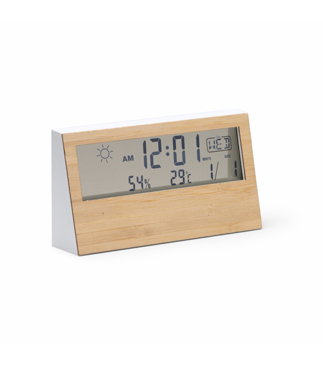 Stație meteo CRONOS albă cu carcasă frontală din bambus
