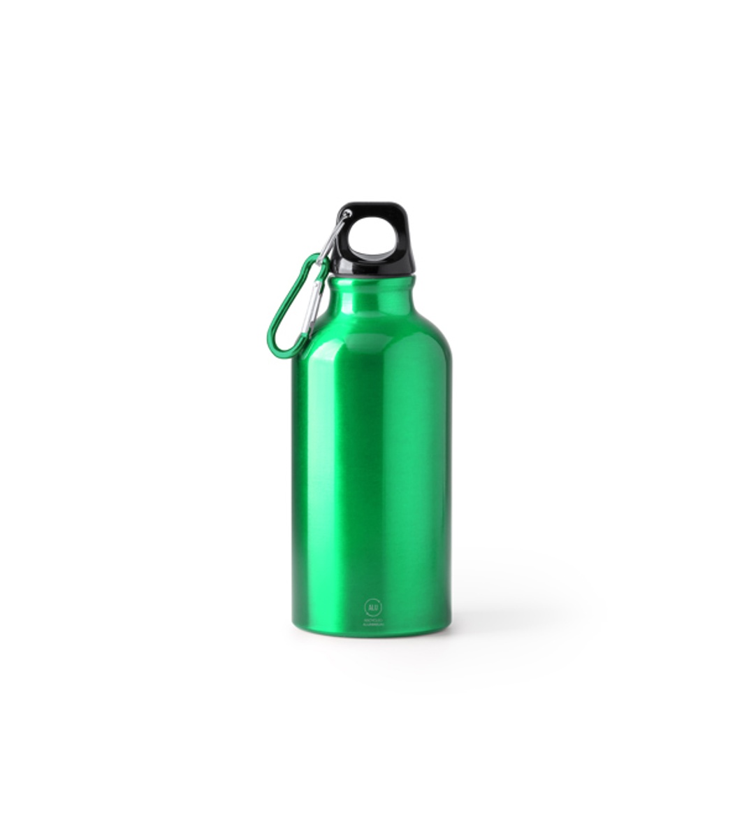 Stamina Sticlă de apă Green Renko din aluminiu reciclat 400 ml Sticlă cu perete simplu din aluminiu reciclat cu carabină asortată