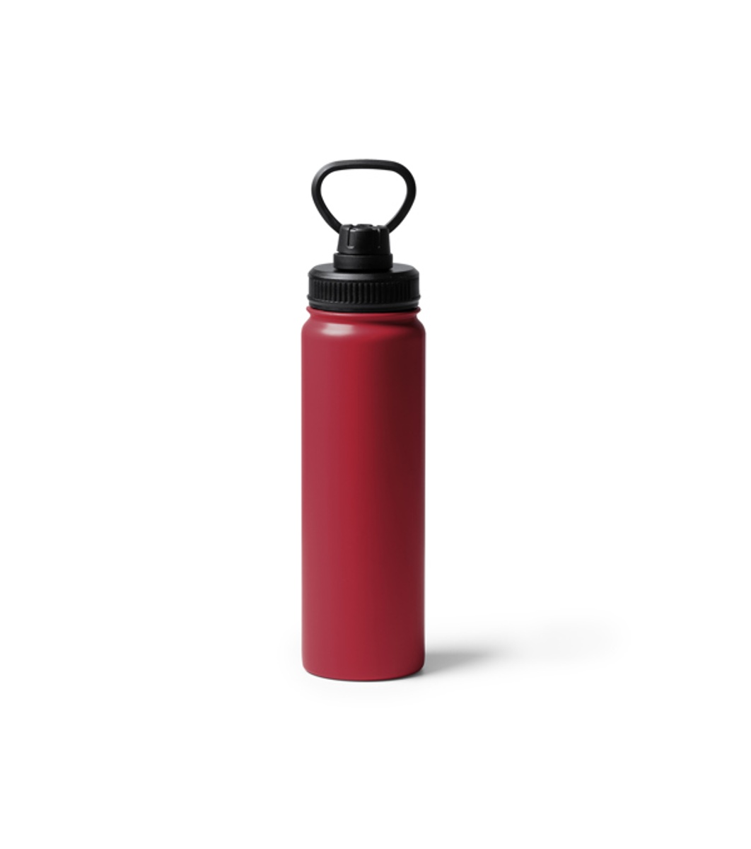 Stamina Sticlă de apă Polit 750 ml din oțel inoxidabil, în nuanță roșie Sticlă sport cu perete dublu din oțel inoxidabil și mâner practic de transport