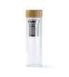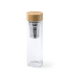 Stamina Sticlă de apă Saoko, transparentă, din sticlă borosilicată, 420 ml Sticlă borosilicată cu pereți dubli și capac din bambus