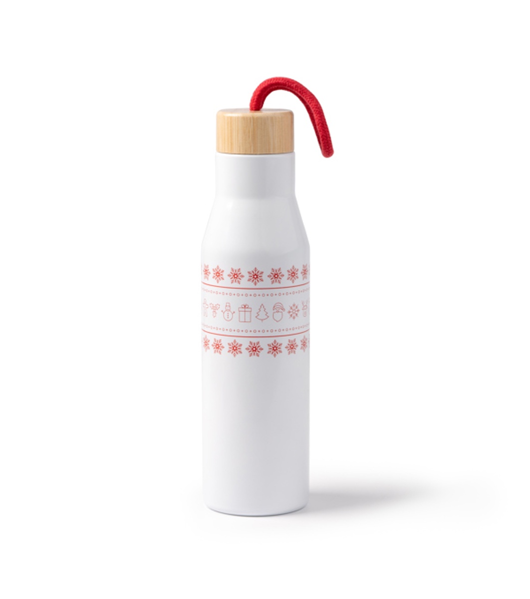 Stamina Sticlă de apă de Crăciun 500 ml Sticlă din oțel inoxidabil cu pereți dubli și capac din bambus.