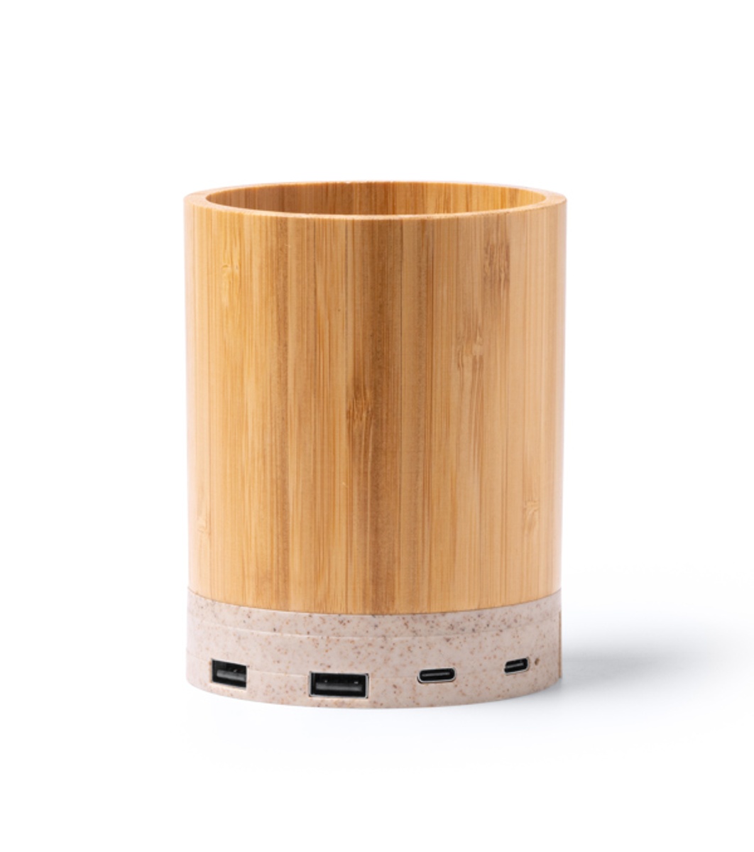 Suport pentru pix cu structură principală din bambus și bază de încărcător wireless din fibră de grâu.