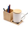 Suport pentru pixuri cu încălzitor de pahare pliabil din bambus.