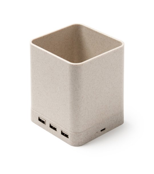 Suport multifuncțional din fibră de grâu cu încărcător wireless de 5W și trei porturi USB.
