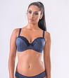 Cupele sunt în întregime din spumă fină, acoperite cu puncte albastre din microfibră, combinate în partea superioară cu o dantelă elastică fină în albastru. Partea lor interioară este de bumbac.