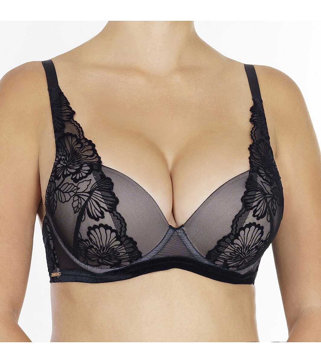 Nikol Djumon Sutien în negru și gri Flora Cupe ferme cu capac din dantelă