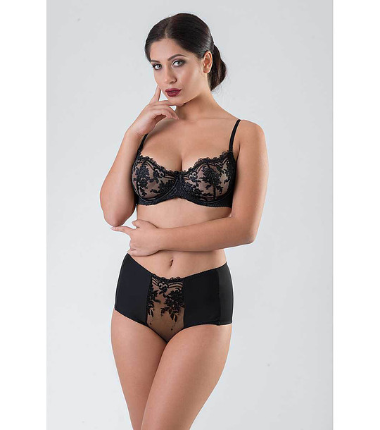 Valea Sutien negru cu cupe moi Grasja Cupe din tul moale cu broderie