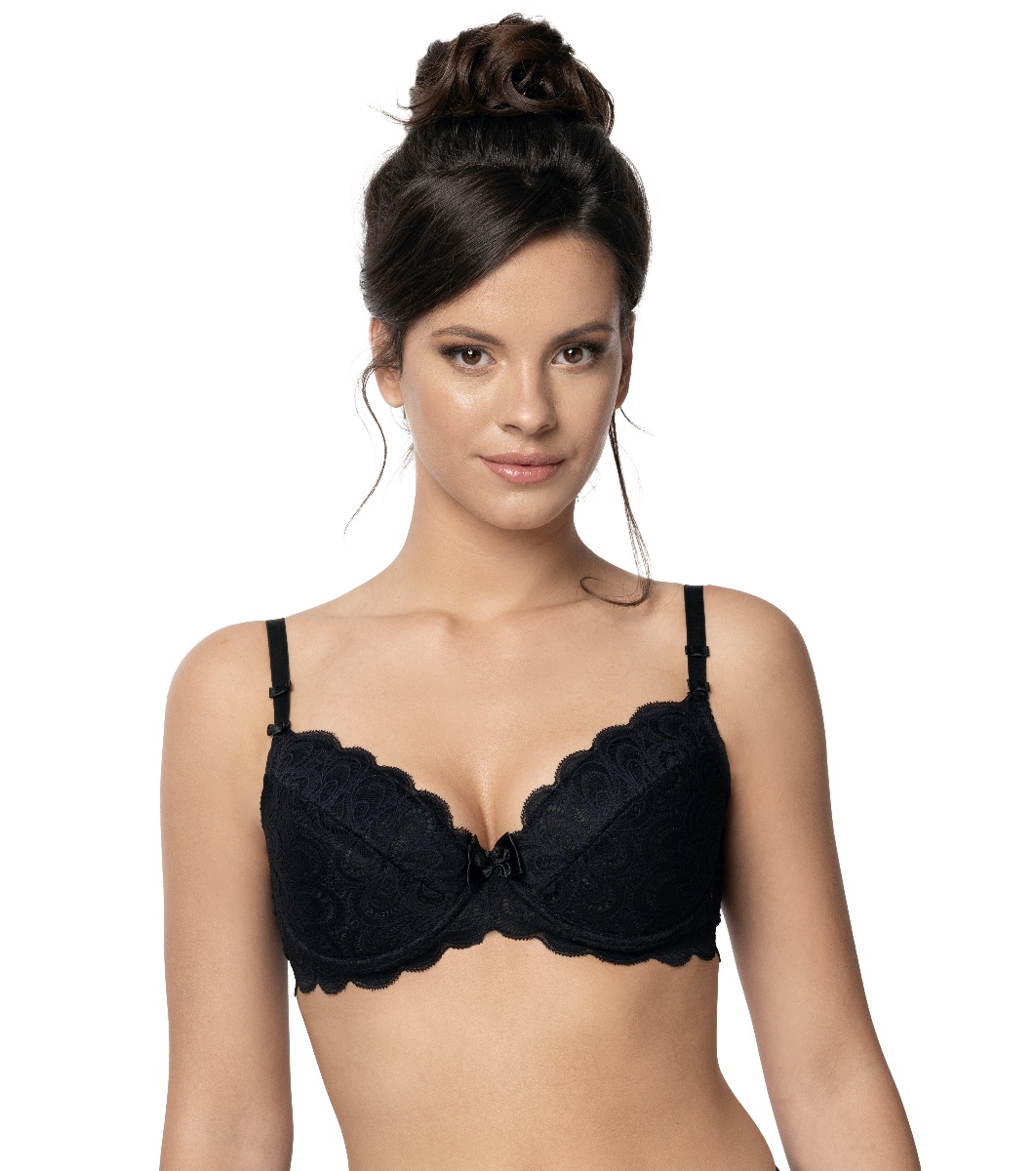 Roza Sutien negru cu efect de lifting Termena Cupe din dantelă în partea de sus