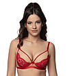 Roza Sutien push-up roșu și bej Torfi Cupe acoperite cu dantelă