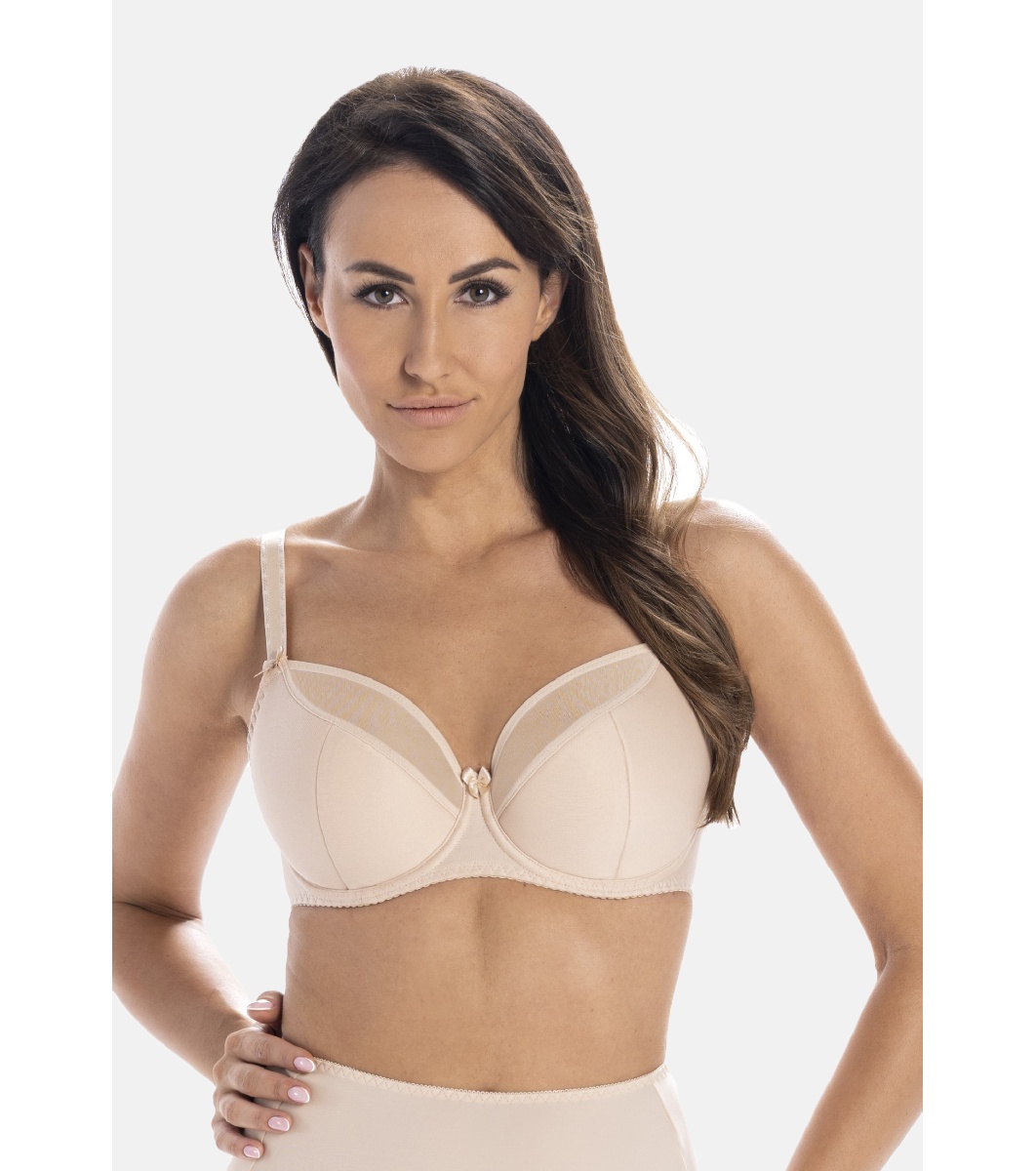 Sutienul semi-căptușit cu armătură, de culoare negru clasic, combină stilul cu funcționalitatea. Fabricat din materiale de înaltă calitate, garantează confort și durabilitate pe tot parcursul zilei. Partea superioară a cupelor este decorată cu o plasă delicată, care adaugă o notă de eleganță, oferind în același timp respirabilitate. Sutienul are bretele late, reglabile, care asigură o potrivire perfectă și ameliorează presiunea asupra umerilor, sporind confortul. Închiderea la spate cu cârlige reglabile permite o potrivire personalizată în jurul taliei. Acest sutien oferă un suport stabil, fiind o alegere excelentă pentru purtarea de zi cu zi. Cu o măiestrie precisă și atenție la detalii, acest sutien este conceput să reziste, menținându-și calitățile estetice și funcționale în timp. Spălat la temperatura corespunzătoare, își va păstra forma și caracteristicile pentru o utilizare pe termen lung. Ideal pentru femeile care apreciază atât confortul, cât și eleganța în garderoba lor de zi cu zi, acest sutien este un plus versatil și fiabil pentru orice colecție de lenjerie intimă.