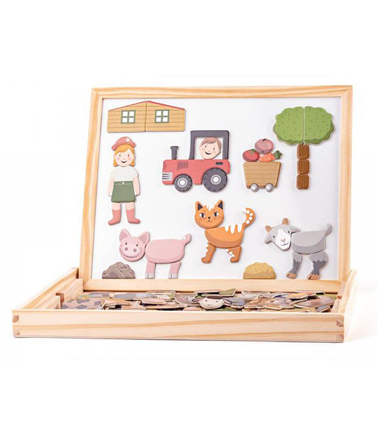 Cu această placă de lemn cu două fețe, va fi ușor. Pe de o parte, copiii pot scrie cu cretă, iar pe de altă parte, vor putea să lipească animalele cu magneți și să scrie cu markere.