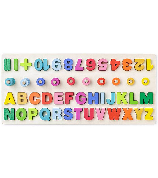 Cu acest puzzle din lemn, învățarea numerelor și a literelor va fi ușor. Este colorat, iar fiecare număr are locul lui.