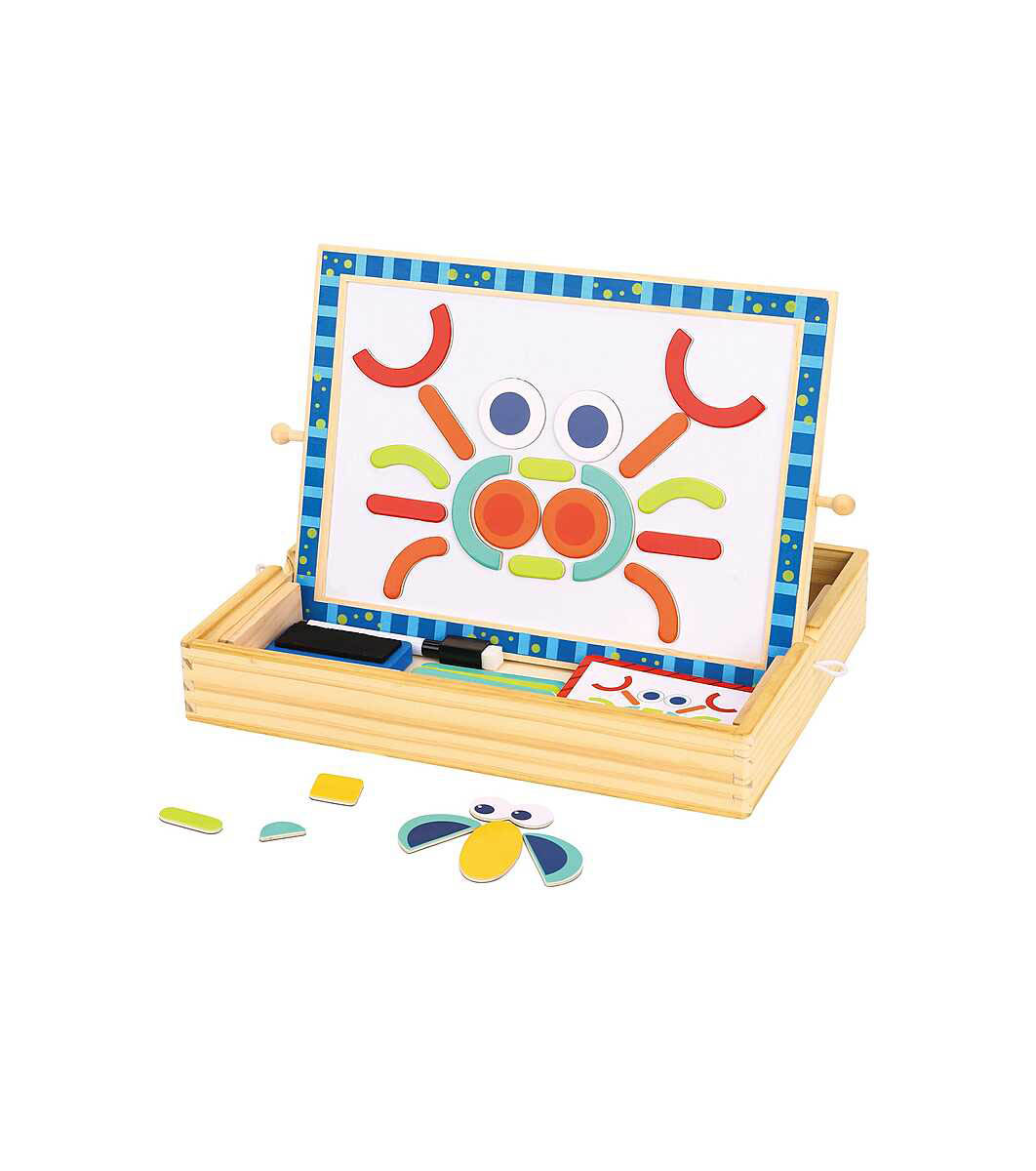 Tooky Toys Tablă magnetică cu două fețe Forme  Placă magnetică cu două fețe formată din 117  pe o parte veți găsi o tablă magnetică. Cu ajutorul magneților de diferite forme și culori, vei putea urmări și aranja 30 de poze diferite cu nivele de dificultate gradate.