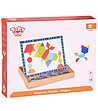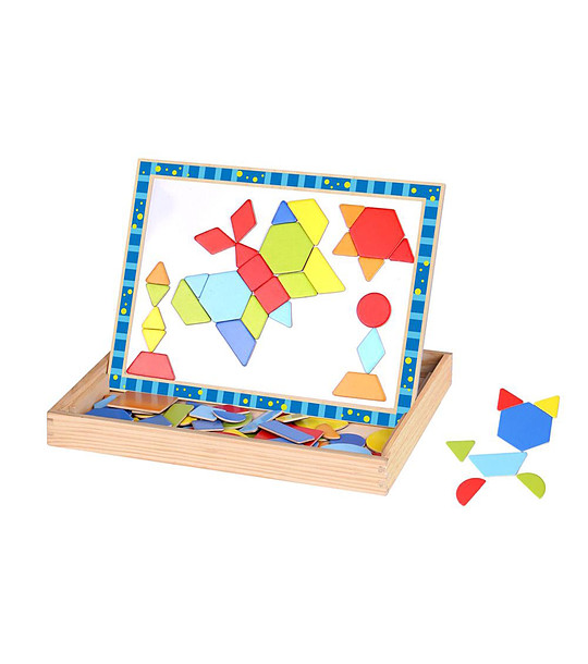 Tablă magnetică, care contine piese diferite ca forma si culoare cu care copilul tau poate aranja figurine. Cealaltă parte este o tablă pentru scris cu cretă. O jucărie distractivă care dezvoltă imaginația copiilor!