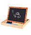 Tablă de scris cu două fețe pentru copii. Pe o parte este negru, potrivit pentru pictura cu creta. Setul include crete și o radieră.
