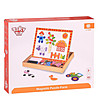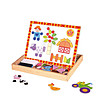 Cealaltă parte a plăcii este albă și magnetică. Copiii își vor putea da frâu liber imaginației și vor crea diferite imagini cu ajutorul formelor magnetice din lemn colorate incluse în set.