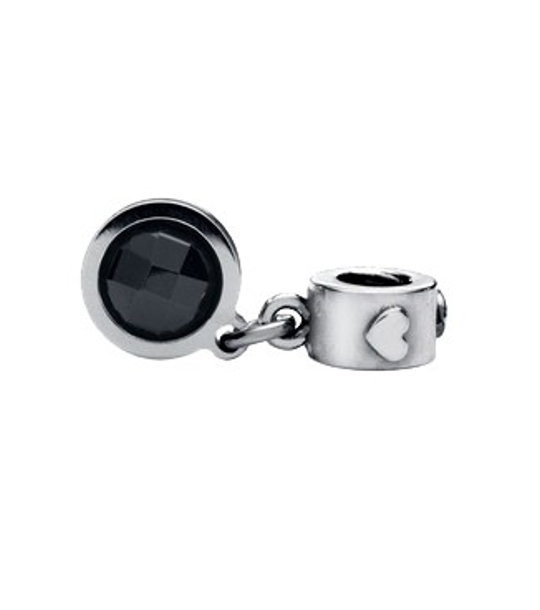 Pandant elegant cu element rotund și piatră decorativă. Piesă de fixare cu un mic relief în formă de inimă.