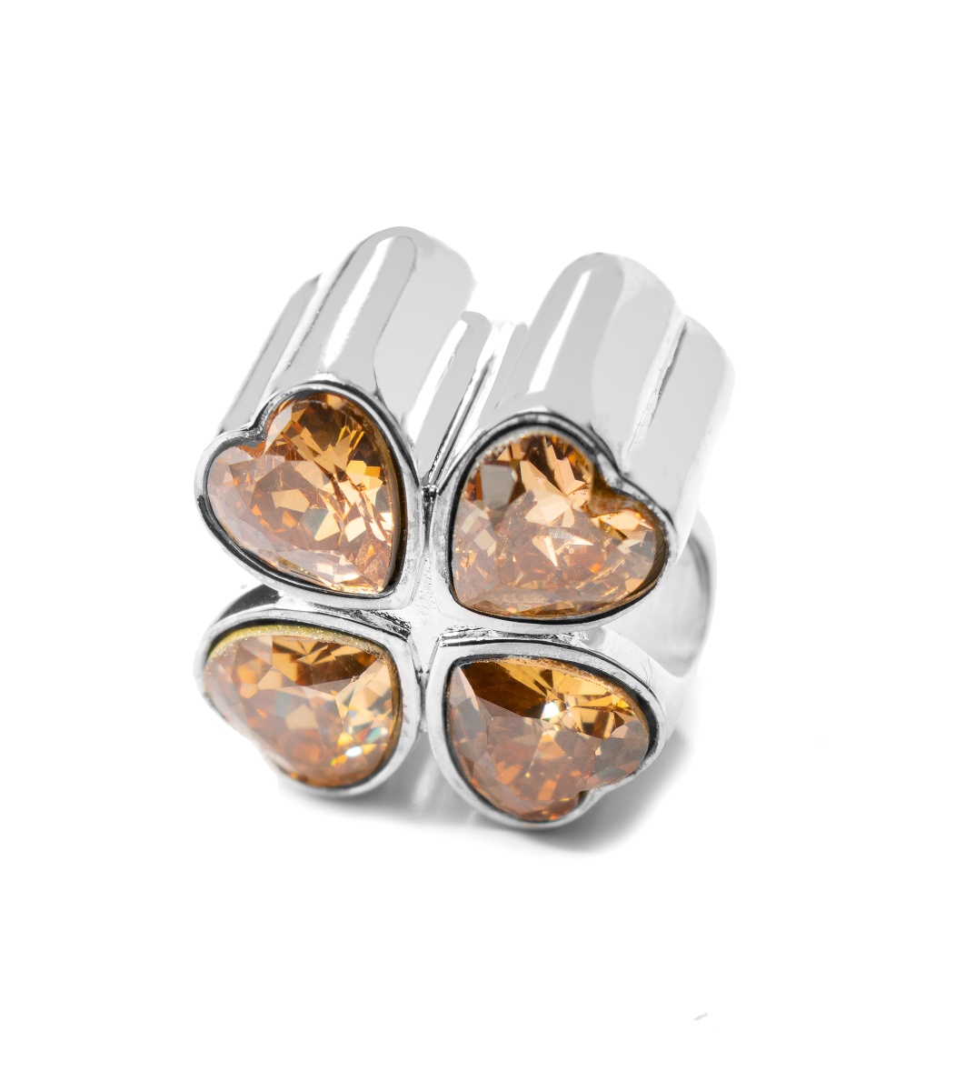 Inel cu patru elemente în formă de inimă, aranjate simetric.