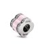 Pandant în formă de floare cu suprafață netedă, decorat cu un rând de pietre în jurul marginii. Partea centrală are o gaură, potrivită pentru înșirarea unui lanț sau a unei brățări.