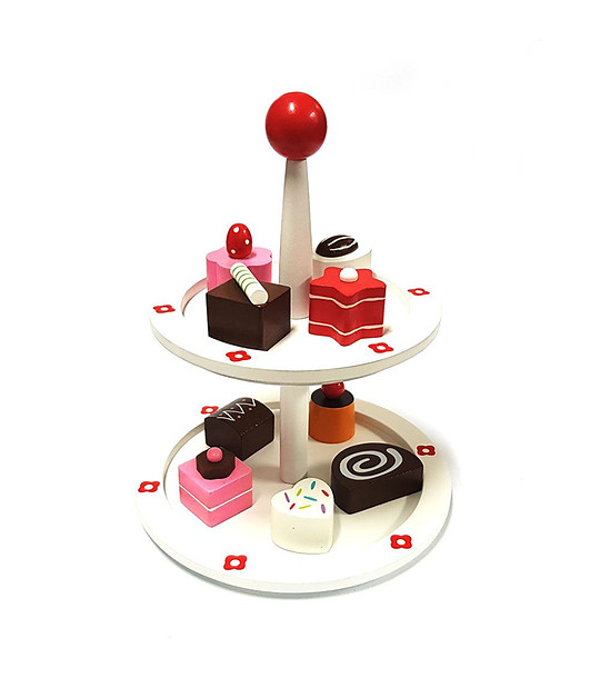 Bass & Bass Tavă de lemn pe două etaje cu prăjituri și brioșe Fiecare cofetărie oferă bomboane, dulciuri, prăjituri, brioșe și tot felul de delicii.
